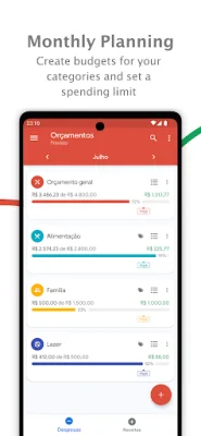 To help users organize their finances, the app allows for categorization and subcategorization of revenues and expenses. It also offers the option to add multiple categories for expenses and a calendar to track finances throughout the month. The app also integrates with Google Calendar and other calendars on the device to set expense reminders. It also offers password protection and the option to enter with biometrics on compatible devices. Other features include notifications for upcoming expenses and the ability to attach receipts for revenues, expenses, transfers, and credit card statements. Users can also transfer funds between accounts and set budgets for categories and subcategories. The app also allows for the import of OFX files from bank accounts and credit cards or CSV files in the standard accepted by the app. Additionally, users can use the calculator within the Tools menu to calculate their investments.
