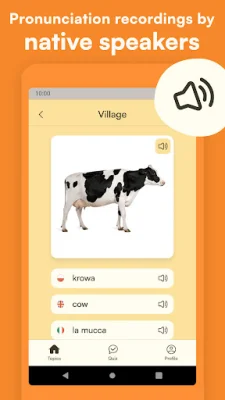The app features 10 different themes, each containing practical and relevant words. These words are accompanied by recordings from native speakers, adding an authentic touch to the learning process. In addition to words, the app also includes alphabets and quizzes to test and reinforce knowledge.