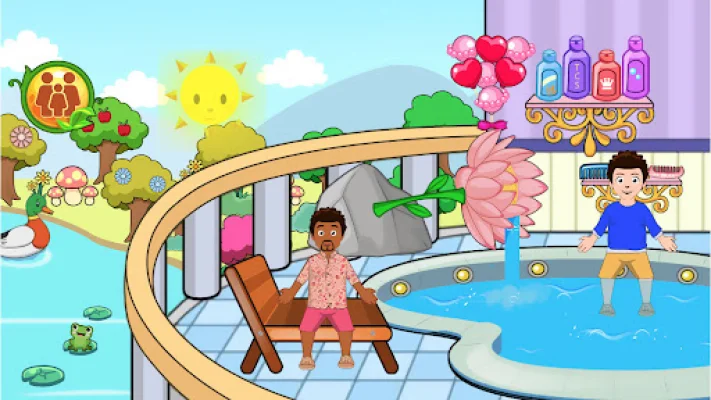The Balcony View is a serene space designed for relaxation and fun. Kids can splash around in the pool and play educational and fun games, offering both play and learning opportunities.
