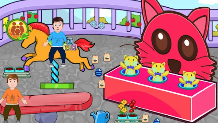The Playground of Fun is a lively room with a variety of exciting activities. Kids can smash objects in the Smashing Objects Game, garden in the gardening area, and play on a classic seesaw for balance and cooperation.