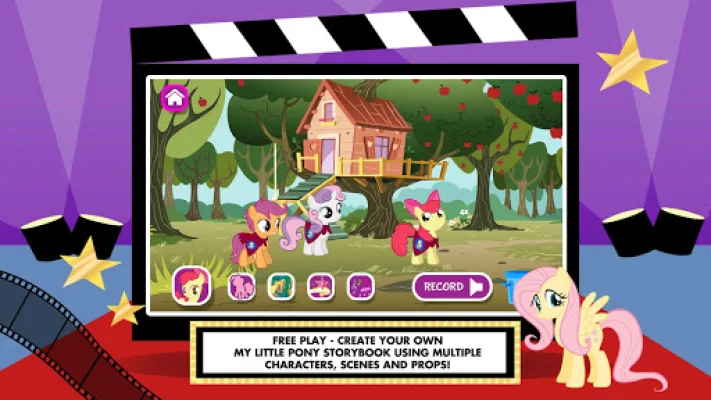 The app features simple animation tools that make it easy for users to turn their ideas into fun MY LITTLE PONY adventures. By picking a pony, a co-star, and a background with props, users can create their own unique stories and yell "ACTION!" to start the animation process.