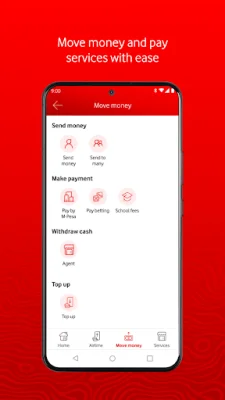 Another convenient feature of the M-Pesa App is the ability to pay businesses and merchants in seconds. You can also buy airtime and bundles for yourself and your friends seamlessly through the app. And with access to over 5000 agents across the country, you can easily withdraw or deposit money from your M-Pesa account.