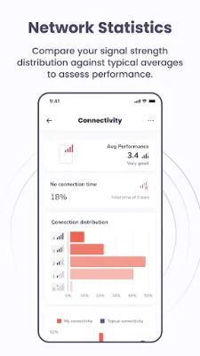 Network Assistant also offers network statistics that allow users to compare their signal strength distribution against typical averages. This feature helps users understand how their network performance compares to others and identify areas for improvement. Furthermore, the app provides information about the user's internet service provider and Wi-Fi connections, whether at home, the office, or on the go. This can be useful for troubleshooting network issues and optimizing connection speeds.