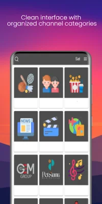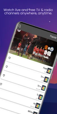 This application offers a wide variety of live entertainment options, including sports, music, movies, documentaries, and news. Users can access national, regional, and international channels, as well as top radio stations from around the world. The interface is clean and user-friendly, with organized channel categories for easy navigation.