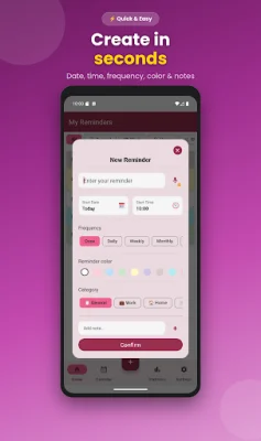 My Reminders is a mobile application that helps users stay organized and on top of their daily tasks, healthy habits, important dates, and more. The latest version (8.3) offers several new features to enhance the user experience. With a simple swipe, users can now easily manage their reminders by deleting or editing them. Additionally, a weekly review feature provides users with a summary of their week every Monday through special notifications. The app also includes built-in usage tips to help users get the most out of it. Users can customize their notifications for daily and weekly summaries through the settings, and can also find the developer's social media links in the "About" section. The app's key features make it a must-have for anyone looking to stay organized and on top of their tasks. Users can swipe to delete or edit reminders, add sub-tasks and lists to each reminder, and view their reminders day by day through a dedicated calendar. The redesigned widget has a modern and transparent design, displaying all of the user's reminders. The app also offers stats with streaks and achievements to help users track their progress and stay motivated. Users can organize their reminders by categories such as work, home, shopping, and health. For added security, the app offers Google Drive backup for premium users. My Reminders is designed to be fast and easy to use, with features such as voice to text dictation for creating reminders and customizable frequencies for daily, weekly, monthly, or custom reminders. The app also ensures on-time notifications with no distractions, and a recycle bin to recover accidentally deleted reminders. The clean and accessible design of the app makes it comfortable for users to navigate and use. The app is available for free with minimal ads, including a banner and a maximum of one ad per day. For just a one-time payment of $2 USD, users can upgrade to the premium version, which offers no ads, cloud backup, voice to text dictation, and unlimited reminders. My Reminders is perfect for anyone looking to stay organized and on top of their tasks, whether it's for daily tasks, healthy habits, important dates, birthdays, anniversaries, or meetings. The app values user feedback and suggestions, as it helps improve and adapt the app to better suit their needs. Download My Reminders today and start organizing your life without forgetting a thing.