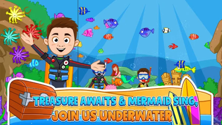 If you're looking for more water activities, this app has got you covered. You can spend your time surfing or snorkeling, and there's even a hidden treasure box and singing mermaid to find. But if you'd rather relax at the beach, you can sit on the dock and try your hand at catching fish. Just watch out for silly Dad, who always seems to catch old boots instead.