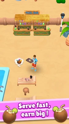 But it's not just about building and repairing. As the owner of this resort, it's your job to keep your guests happy. Serve them refreshing drinks, prepare their rooms, and make sure they have the best experience possible while you continue to grow your island. And as your business expands, you can unlock new areas, upgrade your tools, and take your resort to the next level.