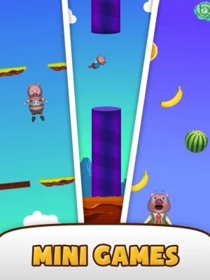 Dare to take on the challenge of dealing with a goofy pig? With Talking Pig Oinky, you can talk to and play mini games with this silly piggy. This game is perfect for kids and toddlers, with its fun features and entertaining pig sounds. Not only will you have a blast talking to Oinky, but you can also play mini games like Flappy Piggy, Food Drop, Piggy vs. Monkey, and Tilt Jumper.