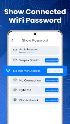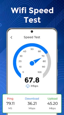 The Show Wifi Password - Wifi Key app is a powerful tool for managing and improving your Wi-Fi connection. It offers advanced features such as a Wi-Fi analyzer and signal strength monitoring to give you full control over your network. With just one tap, you can measure your download and upload speeds and get real-time insights into your internet performance. The app is also compatible with all wireless local area networks (WLAN).