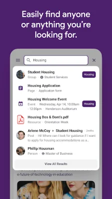 Not only does myACU provide access to everyday systems, but it also offers a comprehensive search function. Users can search for staff, peers, systems, groups, posts, and resources, making it easier to connect with others and find the information they need. Additionally, myACU allows users to connect with departments, services, organizations, and peers, fostering a sense of community within the application.