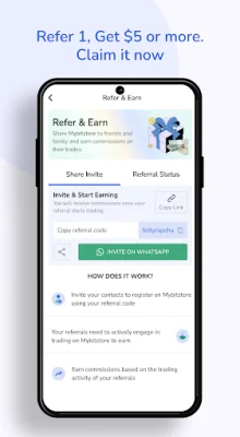 For those who want to earn extra income, Mybitstore offers a refer and earn program. Users can share their referral link and earn commissions every time their friends or family make a trade on the app. This incentivizes users to spread the word about Mybitstore and helps the app grow its user base.