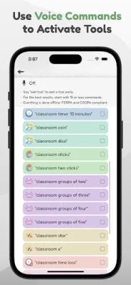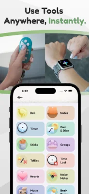 The app includes a list of tools that are easily accessible with just one press. These tools include a bell for alerting the class with different sounds, a note-taking feature for quickly saving notes during busy moments, and a time tracker for adding time increments with each press. There is also a coin and dice tool for generating random numbers and outcomes, as well as a sticks tool for randomly calling on students.