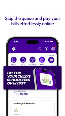 But that's not all - MyDST offers even more features to make your life easier. With MyDST Biller, you can skip the queues and pay your children's school fees directly through the app. No more hassle or waiting in line. And with MyDST Shop, you can access a wide range of products and services, from electronics to food and even gas suppliers, all in one place.