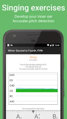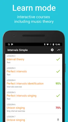 MyEarTraining is an app that allows users to practice ear training exercises anytime and anywhere, without the need for musical instruments. This makes it convenient for users to improve their music skills while waiting for the bus, traveling, or even at their desk. The app is suitable for all experience levels, whether you are new to music theory or an experienced musician. It offers over 100 aural exercises to help users improve their skills, starting from simple intervals and chords to more complex progressions and modes. Users can also choose to use solfeggio or singing exercises to improve their inner ear. The app provides different courses and lessons for major music topics, as well as interval songs and practice piano.