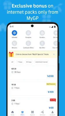 MyGP is an application that provides all the necessary GP services in one place. With this app, you can easily access various services such as checking your account balance, adding your preferred payment method, creating your own pack, and getting higher emergency balance and internet loan. You can also enjoy additional benefits like up to 50% free bonus internet volume on your favorite internet packs.