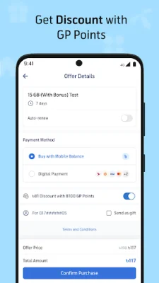 One of the key features of MyGP is the ability to easily check your account balance and internet, minute, and SMS balance. This allows you to stay on top of your usage and make informed decisions about your plan. You can also add your preferred debit/credit card or mobile wallets like bKash or Nagad to easily recharge your balance.