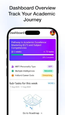 The main purpose of MyIDP is to provide students with a clear path to their goals. By utilizing the AI Roadmap feature, users can select their focus areas and desired timeline, and the app will generate a tailored plan based on their profile information. This includes their grades, exam results, hobbies, and saved goals, eliminating the need for extra forms.