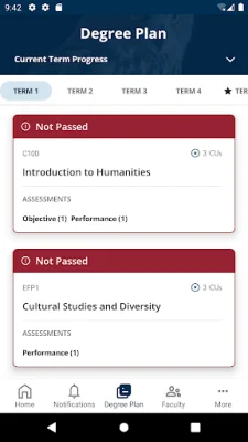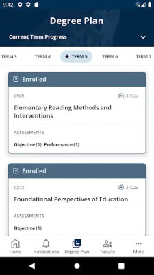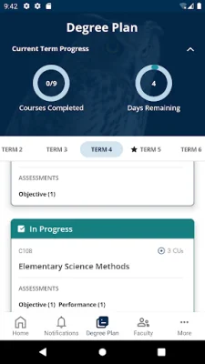 The app also allows students to view their entire degree plan, including the courses they are currently enrolled in, those they have completed, and those remaining to complete their degree. This provides a clear overview of their academic journey and helps them stay organized.