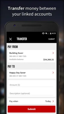 Transferring funds between your linked accounts has never been simpler. With just a few taps, you can easily move money between your accounts, making it convenient to manage your finances.