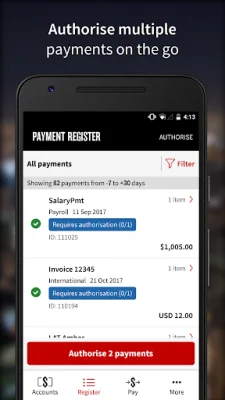 Security is a top priority, which is why the app offers mobile tokens and transaction signing codes for large payments. This ensures that your payments are authorized instantly and securely, giving you peace of mind.
