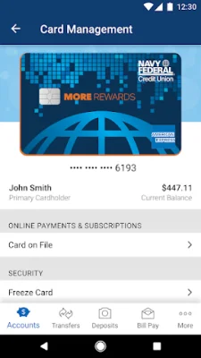 For those looking to expand their financial options, the app offers the ability to apply for new credit cards or personal loans, as well as become a Navy Federal member. Users can also view and manage their statements, track credit card reward points, and redeem cash rewards.