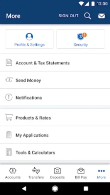 The app also offers convenient features for managing your debit and credit cards, such as ordering new or replacement cards, activating them, and updating your PIN instantly. Users can also change their sign-in password for added security and set travel notifications for their cards.