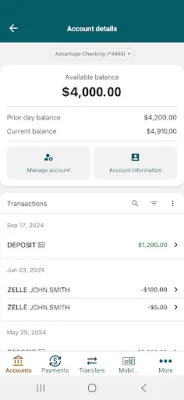 The Personal Banking features of this application allow users to easily manage their accounts and finances. Users can view their account balances, details, and activity across all of their accounts. They can also access their personal credit score and report for free, apply for new accounts, and review statements and notices. The app also offers the option to export transactions for easy record-keeping.