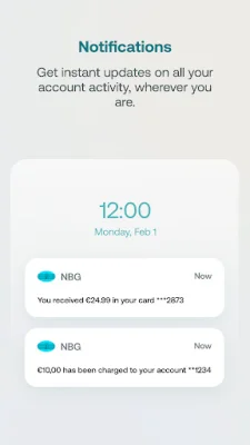 With NBG Mobile Banking, you can stay updated on your account and card activity with instant notifications. You will receive alerts for things like salary deposits and purchases, keeping you informed and in control of your finances. This app also allows for fast and secure transactions, including bill payments, credit card payments, and money transfers within Greece via IRIS payments. You can also easily approve online purchases with your card.