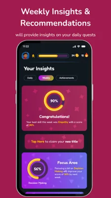 Neo is a mobile application that offers daily skill games and story challenges to its users. These games are designed to be quick and easy to play, making them perfect for on-the-go sessions. The app also features a streak system, where players can keep track of their consecutive days playing and unlock badges as they progress. Additionally, users can monitor their real progress through the use of Skill Cards, which update after each game and track growth in various skills such as logic, decision making, and emotional intelligence.