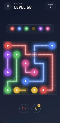 To play, simply connect the dots by drawing glowing lines between matching colored lamps. Use strategy to fill the grid and cover every square on the board. As you progress through the game, you will encounter more advanced levels that require you to use bridges to cross lines and solve complex layouts.