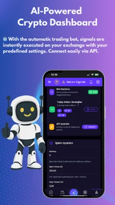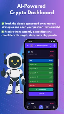 Neron AI Trader is a comprehensive platform designed to help users maximize their profits in the cryptocurrency market. It offers a range of features, including an automated trading bot, AI-based signals, whale alerts, pump signals, advanced indicators, an AI chatbot, technical analysis tools, real-time crypto news, and more. These features allow users to efficiently and securely manage their crypto investments. The automated trading bot is available 24/7 and operates according to the user's preferences, increasing efficiency and maximizing profits. The AI-based signals provide real-time market opportunities, while the whale alerts track the movements of large investors and allow users to adjust their strategy accordingly. The pump signals help users take advantage of sudden market fluctuations, and the advanced indicators aid in making informed investment decisions. The platform also offers an AI chatbot that can instantly answer users' cryptocurrency questions and provide helpful advice. Technical analysis tools and professional charts allow users to track market trends easily. Real-time crypto news keeps users updated on the latest developments in the crypto world. Neron AI Trader is a comprehensive solution for all crypto trading needs, with AI support that continuously improves its effectiveness. The platform also prioritizes top-level security, using advanced protocols to protect user data and assets. Users can receive immediate notifications about important market changes, allowing them to react quickly. Neron AI Trader operates in compliance with applicable laws and regulations and respects user privacy. The platform's support team is always available to assist users on their crypto investment journey. Users can contact them at [email protected] for any assistance. In conclusion, Neron AI Trader offers advanced features and AI support to help users increase profits, reduce risks, and take control of their crypto investments. It is a comprehensive and secure platform that allows users to be leaders in the crypto market. Download Neron AI Trader now and start trading with confidence!