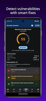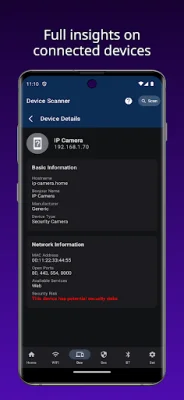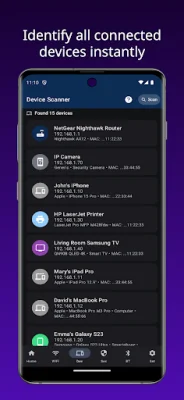 Discover what's connected to your network and ensure its security with our powerful scanning tools. Our application offers a complete device detection feature, allowing you to easily find all devices connected to your WiFi network. With our WiFi security analysis, you can identify any vulnerabilities in your network and take necessary actions to protect it. Additionally, our Bluetooth device scanner detects any nearby Bluetooth connections, giving you a comprehensive view of your network.