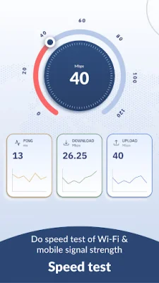 One of the key features of this app is the internet speed test, which allows you to measure your download and upload speeds and stay informed about the performance of your internet connection. You can also view a comprehensive history of your speed test results to monitor your network performance over time. The app also includes a signal meter that visualizes the signal strength for 2G, 3G, 4G, 5G, and WiFi connections in an intuitive way.