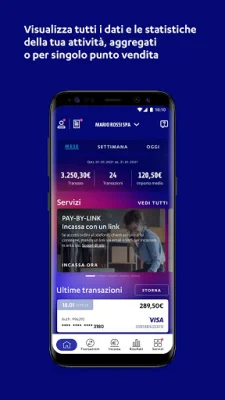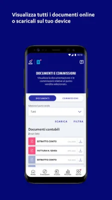 Inoltre, l'app ti permette di consultare e scaricare i tuoi documenti contabili e fiscali relativi alle transazioni digitali accettate, come fatture ed estratti conto, e di gestire il tuo profilo e le utenze. Potrai modificare i tuoi dati e visualizzare quelli della tua società, creare utenze secondarie per i tuoi dipendenti e rimanere aggiornato con le ultime comunicazioni.