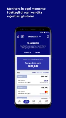 Con Nexi Business, potrai monitorare e gestire le tue transazioni in qualsiasi momento. Potrai consultare il dettaglio delle transazioni effettuate, sia con POS in negozio che online con e-commerce, visualizzare i dati aggregati o per singolo punto vendita, cercare le transazioni per numero della carta o codice di autorizzazione e gestire gli storni in totale autonomia.