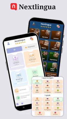 Nextlingua offers lessons for a variety of languages, including Russian, German, English, French, Spanish, Italian, and Portuguese. Each language is taught step by step, with a focus on important aspects such as alphabet, grammar, and pronunciation. The app's progressive teaching method makes even complex languages seem easy to learn.