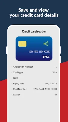 This app is designed to make managing credit card information easier and more secure. It uses NFC technology to quickly and securely capture and store card data with just a tap. This app is not a payment or credit card approval app, but rather a tool to help users keep track of their credit cards.