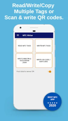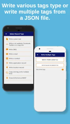 With NFC Tag Writer, users can write multiple tags of text or URL type using a JSON file. The app also allows users to scan QR codes or barcodes, search for products, open websites, or write scanned QR codes as NFC tags. It can even read credit cards and provide information about the maker of the tag, the available technology, its serial number, size, and all the data on the tag in NDEF format.