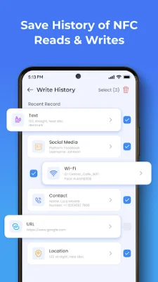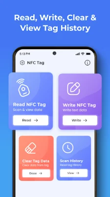 The app offers a variety of features, including NFC tag reading, writing, and erasing. Users can instantly scan and read data from NFC tags, cards, and devices, and write custom information such as text, URLs, contact details, and Wi-Fi credentials. This makes it easy to store and organize data for quick reuse and access.