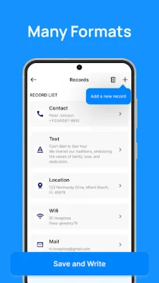 Our NFC app offers advanced features and tools for managing NFC tags with ease. It is a top solution for card readers and provides instant connection with NFC tags without any complex setup. With our NFC reader, you can scan various types of NFC tags such as contacts, Wi-Fi, URLs, and social profiles in just seconds. Our NFC writer allows you to create custom NFC tags and alerts you if the data exceeds capacity. You can also check technical details of NFC tags, such as type, serial number, and memory size, with our NFC card reader.