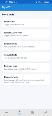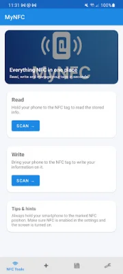 MyNFC is a mobile application that allows users to easily manage and utilize NFC tags with their smartphones. With this app, users can read, write, and copy NFC tags, as well as access a variety of features such as sharing WiFi, transferring contacts, launching apps, and switching profiles. The app has both free and premium features, with the premium version being available for a one-time purchase. In the free version, users can scan and read various types of data from NFC tags, write their own data onto compatible tags, and manage and reuse saved tags. The app has a clean and modern interface, with a dark design option. The premium version offers advanced professional tools, including the ability to trigger actions through NFC, system automation features, smart profiles, and analysis and diagnostic tools. The Smart Tasks feature allows users to link actions to specific NFC tags, making it easy to activate them with a single tap. System automation features include opening the WiFi panel, toggling Bluetooth, activating the flashlight, launching the camera, and more. Smart profiles can be created for different settings, such as "Car", "Home", or "Work", and can be activated through NFC tags or manually. The app also offers business tools, such as NFC business cards, product labels, and service tags. MyNFC is designed to be user-friendly, with a clean and structured home screen and clear card layouts and dialogs. The premium features are marked with a lock icon and can be unlocked with a one-time purchase. Privacy and permissions are taken seriously, with no account or registration required and NFC being used only for reading and writing tags. Additional permissions, such as camera, Bluetooth, and internet, are only used for their corresponding features. The app also has a privacy policy available on their website and within the app. MyNFC is available for a one-time purchase, with no recurring fees. The app is fully usable in the free version, with the option to upgrade to the premium version for additional features. If users have any questions or suggestions, they can contact the support team via email. Overall, MyNFC is a comprehensive and user-friendly app for managing and utilizing NFC tags with a smartphone.