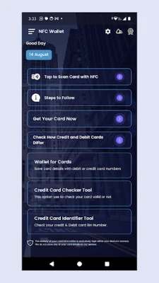 Please note that the features provided by our app, including card management and NFC scanning, are intended for personal use only. We do not store or transmit your card numbers, ensuring your financial data remains secure. Users are responsible for the safe and lawful use of this application. Thank you for choosing our app!