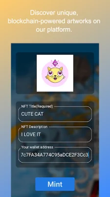 The NFT Creator and Token Maker application allows users to easily mint NFTs by attaching a digital certificate to a digital file, such as an image, video, or audio clip. This certificate is securely stored on the blockchain, ensuring ownership and uniqueness of the asset. The user-friendly interface allows for effortless uploading of files, adding metadata, and personalizing NFTs. Users can also set royalties for future resales or transfers of their NFTs.