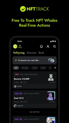One of the main features of NFTTrack is the ability to track and monitor NFT whale activity, including buys, mints, and sells. This allows users to stay informed about the movements of large NFT investors and potentially discover new investment opportunities. Additionally, users can see what NFTs their Twitter friends are buying and selling, making it easier to stay connected with the NFT community.