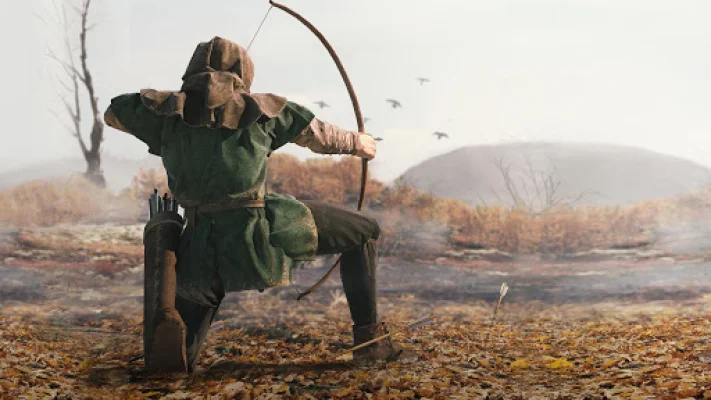 The player's character has learned kung fu, fighting skills, and climbing from their evil sensei. They are armed with a lethal sword and bow, and the player must develop their archery skills to strike at the right moment. The player can also use magic arrows to eliminate multiple enemies at once. The ultimate goal is to finish all levels, defeat all enemies, and become a legend.