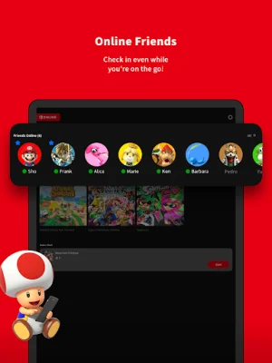 The app also allows users to view their online friends and see which games they are currently playing. Friend requests can also be sent directly from the app, although some features, such as adding friends, can only be accessed from the Nintendo Switch system.