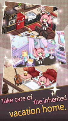 The game features a combination of SNG vibes and the simplicity of a clicker game. Players are tasked with taking care of an inherited vacation home and transforming it into a beautiful place. To help with this, players can hire attractive butlers and show off their sense of fashion. Additionally, players must also take care of the animal friends that come to play at the vacation home.