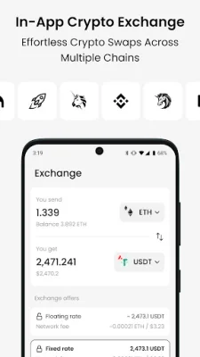 In addition to buying cryptocurrencies, Noone Wallet also offers an in-app exchange for effortless swaps between digital assets. With competitive rates and user-friendly interface, this feature simplifies the process of managing multiple cryptocurrencies.