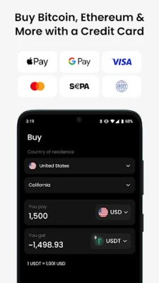 One of the key features of Noone Wallet is the ability to buy various cryptocurrencies, including Bitcoin, Ethereum, and Dogecoin, using your debit or credit card. This convenient feature streamlines the purchase process and ensures secure transactions directly from your wallet.