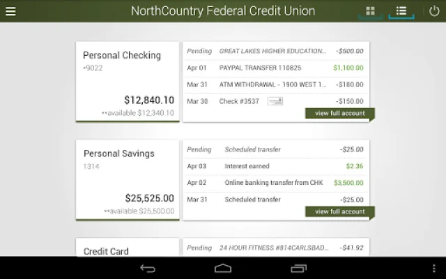 NorthCountry's Mobile App is a convenient and secure way to manage your bank accounts from your mobile device. With this app, you can access your accounts anytime and anywhere, giving you the flexibility to do your banking on the go. The app is specifically designed for Android devices, making it easy for Android users to stay on top of their finances. One of the key features of NorthCountry Mobile is its speed. The app is designed to provide a fast and efficient banking experience, allowing you to quickly check your account balances and transaction history. This means you can stay updated on your finances without having to wait for long loading times or slow processes. Security is also a top priority for NorthCountry Mobile. The app is equipped with advanced security measures to protect your personal and financial information. This gives you peace of mind knowing that your sensitive data is safe and secure while using the app. Another great advantage of NorthCountry Mobile is that it is completely free to use. This means you can enjoy all the features and benefits of the app without any additional costs. This makes it a cost-effective option for managing your bank accounts, as you won't have to pay any fees or charges to use the app. With NorthCountry Mobile, you can perform a variety of banking tasks right from your Android device. This includes depositing checks, paying bills and credit cards, transferring money between NorthCountry accounts, and even sending messages to the bank. This makes it a convenient all-in-one solution for your banking needs. To use NorthCountry Mobile, you must be a member of NorthCountry Federal Credit Union and enrolled in their online banking service. If you're not already a member, you can easily sign up on their website, www.northcountry.org. With NorthCountry Mobile, you can bank with confidence and enjoy a seamless and hassle-free banking experience.